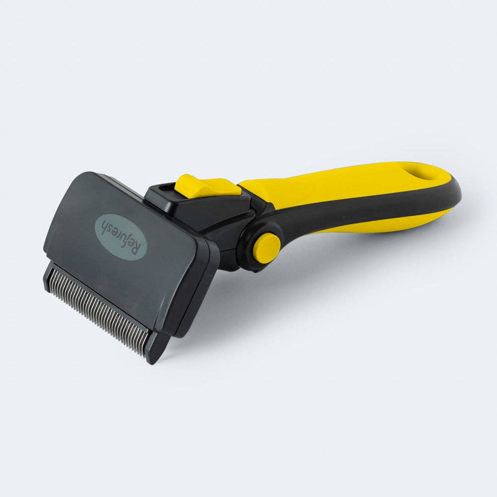 Unpack your new Refuresh Deshedding Brush, go fetch your furry friend, and begin their at-home grooming journey.