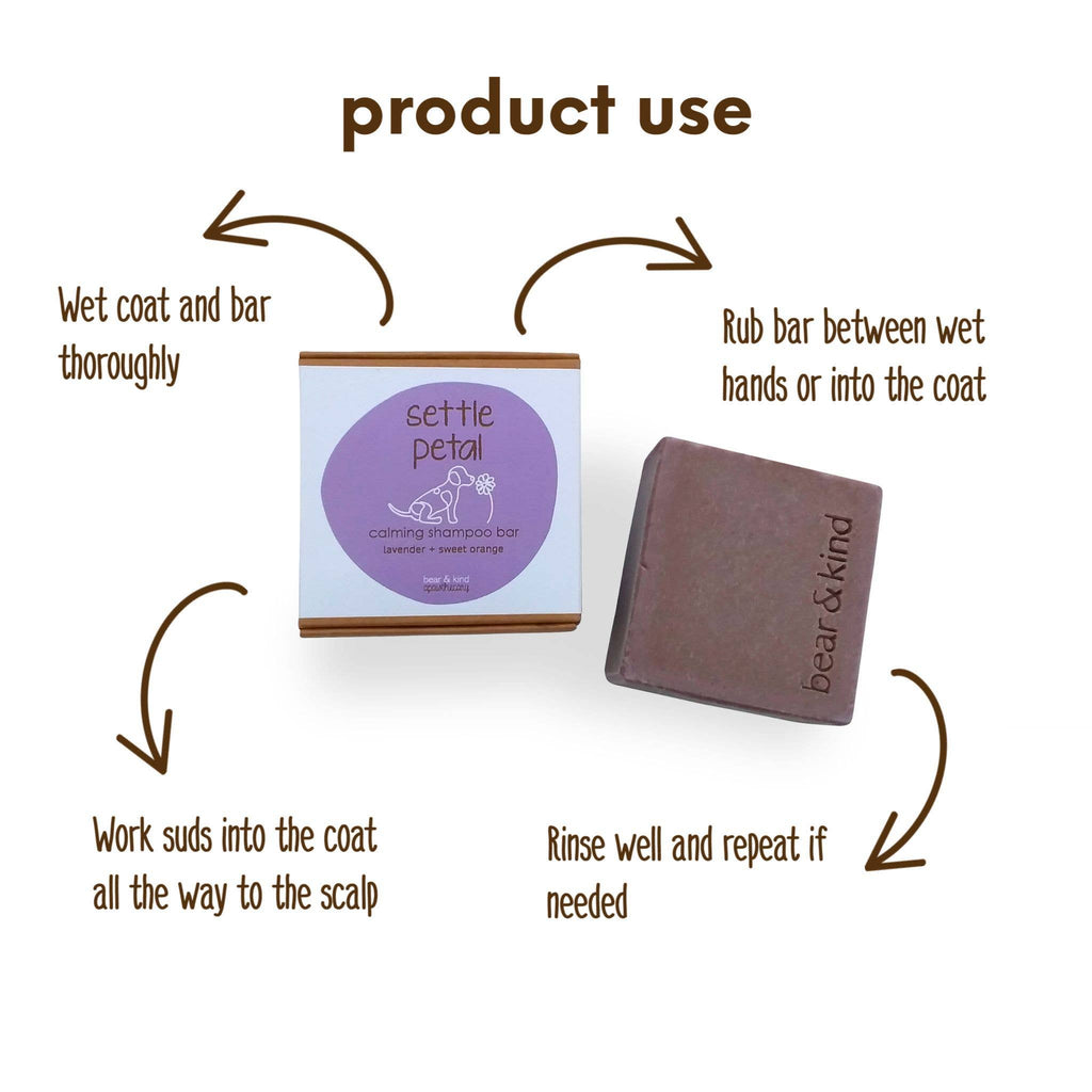 Is your pupper a nervous nellie? Especially sensitive to change or stress? This organic calming dog shampoo bar is formulated to soothe & soften sensitive or skin, add shine & bounce to the coat, & help keep him calm. Lightly scented with lavender & sweet orange essential oils to help keep him relaxed. By the way, our products are 100% free of parabens, sulfates, synthetics, petrochemicals, palm oil, & are also cruelty free.