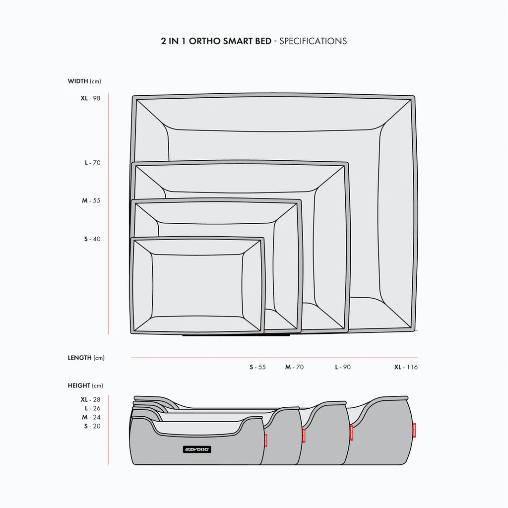 Introducing the EzyDog 2:1 Ortho Smart Bed, a premium cooling memory foam dog bed that combines comfort and innovation for your dog. Our Next-Gen Tempur Contour Memory Foam provides unmatched support and pressure relief for a restful sleep. Engineered with a gel-infused cooling layer, this bed ensures optimal temperature regulation to keep your dog cool and calm. This 2:1 design combines a durable removable mattress that doubles as a crate or travel bed, giving you the flexibility to create a consistent, comforting environment anywhere you go.