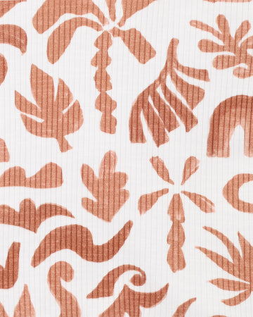 Bold, breezy and ready for adventure—this caramel abstract print tee brings a splash of desert-inspired fun to baby's summer wardrobe. Made from soft, stretchy rib and designed with comfort in mind, it’s the perfect everyday tee with a playful twist. Pair it back with the Boys Gingerbread Shorts for a cool and coordinated look.