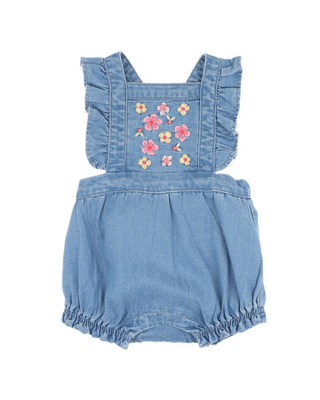 EMBROIDERED DENIM ROMPER