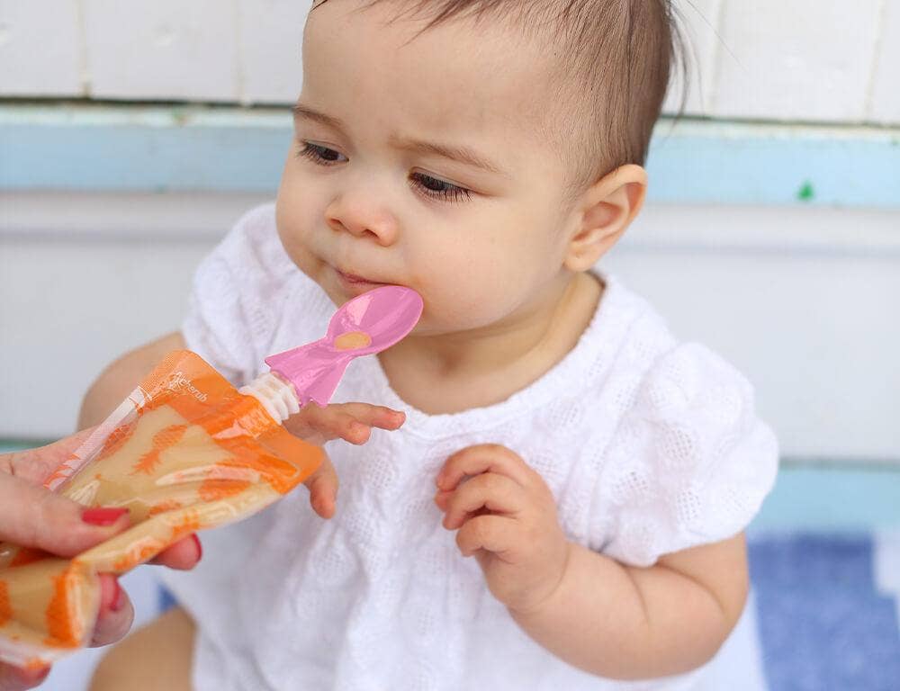 Do you find that more food ends up on the floor than in bubs mouth at meal times? Us too! That’s why we created our no mess food pouch spoons. Simply screw the spoon onto our reusable foods pouches or even the pre-made pouches from the supermarket and feed bub directly from the pouch. The only place food can go is in bub’s mouth. Perfect for no mess at home and on the go feeding. Packed tidily in the included compact travel case, they stay nice and clean and cosy into nappy bag pockets when on the go.